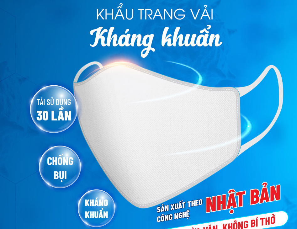 Khái niệm: Khẩu trang vải kháng khuẩn có đôi chút khác biệt só với khẩu trang vải. Thành phần chủ yếu của loại này cũng là Vải. Tuy nhiên, đây là một loại vải đặc biệt có tính chất kháng khuẩn. Loại vải kháng khuẩn cũng đã được thử nghiệm diệt cả vi khuẩn và virus trên bề mặt vải.